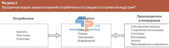 Спортивная индустрия состоит из трех основных элементов: потребителей спорта, спортивных продуктов, которые они потребляют, и поставщиков (рис. 2). А ее цель – удовлетворять потребности трех типов потребителей: зрителей, участников и спонсоров.